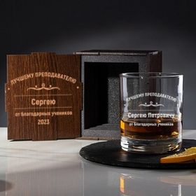 Эксклюзивный штоф с гравировкой в деревянном футляре