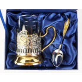 Подстаканник позолоченный "Герб России" в футляре5472219