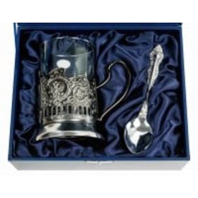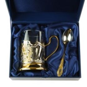 Красивый позолоченный подстаканник в подарочной коробке с