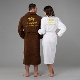 Комплект халатов с именной вышивкой "Царь и Императрица" (синий и персик)7347344