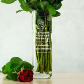 Стеклянная ваза для цветов с лазерной гравировкой