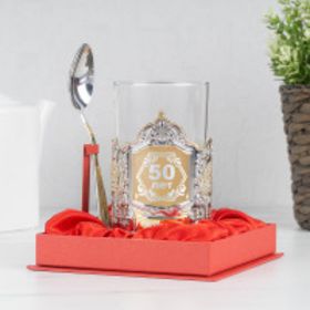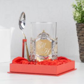 позолоченный подстаканник в подарочной коробке с гравировкой |