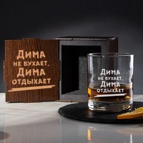 Именной бокал для виски "Не бухает, а отдыхает"8034673