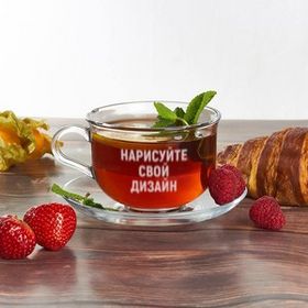 Стеклянная чашка с блюдцем и гравировкой