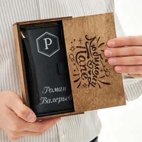 Стильный портмоне с именной печатью в футляре с гравировкой