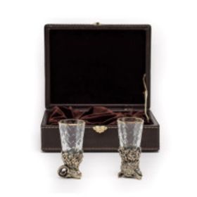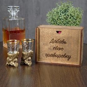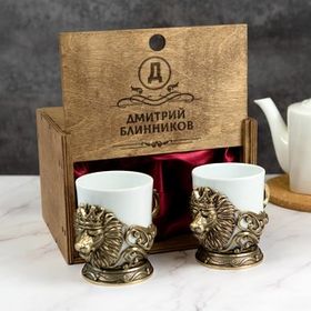 Именной набор из двух стопок "Царь зверей" с деревянном футляре9442688
