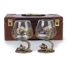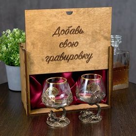 Именной набор бокалов для коньяка "На охоте" в деревянном футляре9442689