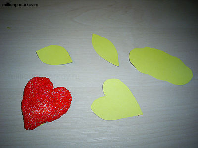 Из картона вырезаем шаблоны листочков, сердечек, облачко, солнце и лучи. Обклеиваем их шариковым пластилином с одной стороны.