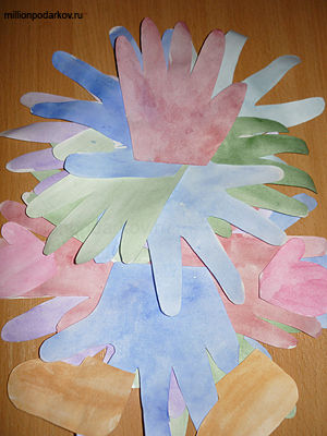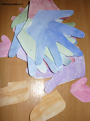 Вырезаем ладошки и раскрашиваем