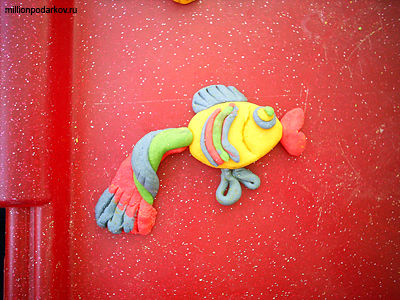 Добавляем ротик, плавники, декор на туловище. Поделка сохнет в течение нескольких дней при комнатной температуре.