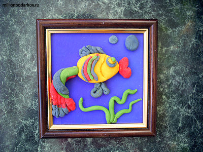 В данной статье представлена бесплатная поделка из теста и руководство к ее изготовлению. Такое изделие делается просто и быстро, а материалы для его создания можно найти в каждом доме. В результате у нас получился вот такой сказочный подводный мир с симпатичной рыбкой.