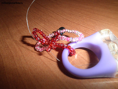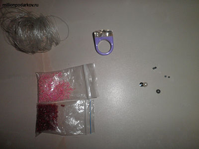 Для изготовления бабочки нам понадобится цветной бисер и колечко. Для глаз лучше подобрать 2 бусины больше и 1 яркую самую большую. На рыболовную леску будем нанизывать бисер.