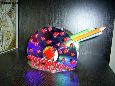 Нам осталось лишь украсить подставку для дачных мелочей бусинами, приклеив их горячим силиконовым клеем. Теперь Вы можете ставить в подставку карандаши и ручки или прятать там ключи и другие необходимые вещи.