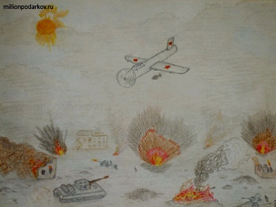 К празднику День Победы во многих школах проходят выставки, где размещаются различные картинки и поделки сделанные школьниками. В этой статье вы найдете пример картинки к этому празднику. На картинке изображена война, которая еще раз, напоминает нам, через какие испытания пришлось пройти нашим прадедам, чтобы освободить Землю от фашизма.