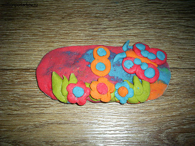 Детская поделка из соленого теста «Сувенир для мамы на 8 марта 'Цветочная поляна'»