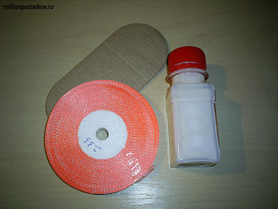 Также приготовьте акриловый лак, картон, скотч, ножницы и атласную ленту.