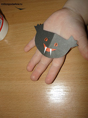 Склеиваем детали. Детская поделка из бумаги летучая мышь готова!
