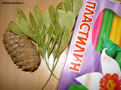Для того, чтобы у нас получились детские поделки из еловых шишек "Кролик" нам потребуется еловая шишка, семена клёна, пластилин, стек.