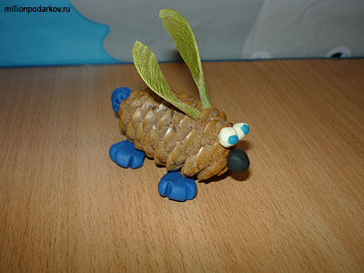 Детские поделки из еловых шишек "Кролик"