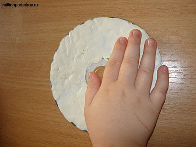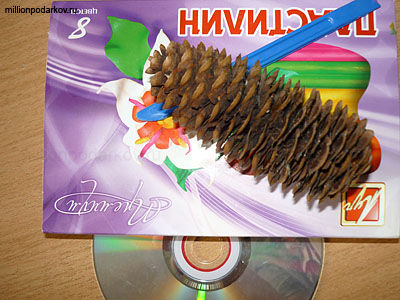 Для поделки нам потребуется старый диск, пластилин и еловая шишка.
