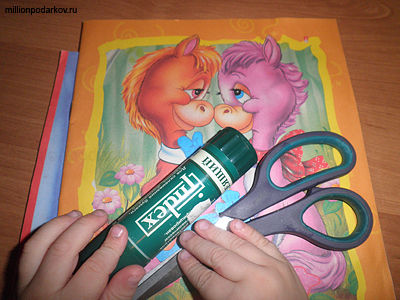 Для того, чтобы сделать детскую поделку из цветной бумаги, нам понадобится набор цветной бумаги с большим количеством листов или несколько наборов с основными цветами. Приготовим клей, ножницы и альбомный лист.