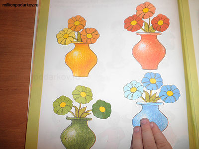 Ребенок с удовольствием будет наклеивать подходящий оттенок цветочка в вазочку.