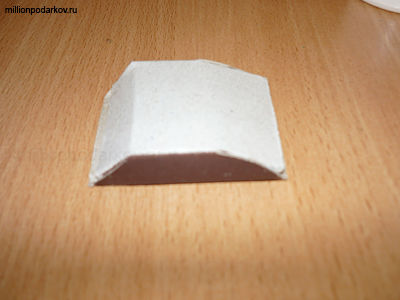 Надрезаем внешнюю часть коробка в верхней части с 4-х сторон. Затем срезы приклеиваем, так чтобы получилась фигура в виде трапеции - это будет верхняя част броневика.
