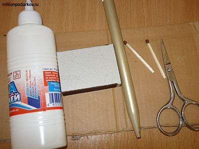 Для детской поделки к 9 мая "Броневик из коробка" вам потребуется спичечный коробок, две спички, картон, ножницы, ручка и клей ПВА.