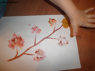 Ребенок с радостью окрасит листочки, смешивая краски.