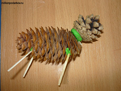Для поделки из природных материалов вам потребуется шишка еловая, шашка сосновая, спички, пластилин.