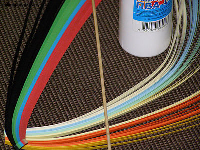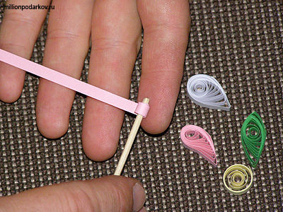 Берем бумагу для квиллинга закручиваем на иголочку (я накручивал на зубочистку), после чего распускаем заготовку и формируем нужный узор.