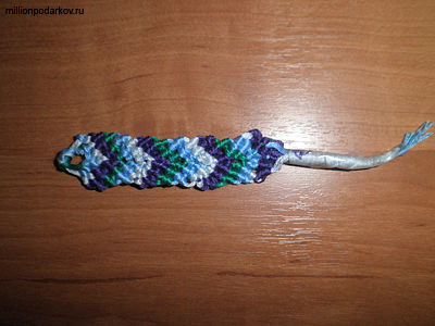 В отверстие, которое образовалось около первого узелка можно просунуть остальные нитки и получится застежка.