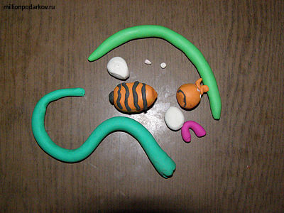 Лепим необходимые детали из пластилина для нашей "Пчелки"