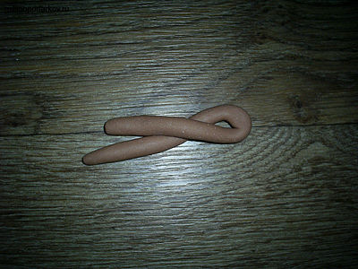 Из теста скатываем длинную колбаску и лепим из нее завитушку.