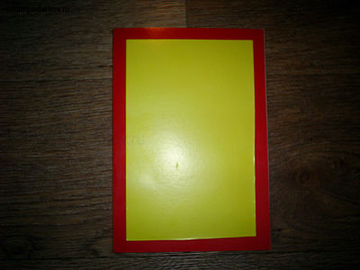 Из двух листов картона делаем основу для открытки. Для этого мы картонный лист красного цвета сложили пополам и приклеили меньшую деталь желтого цвета с помощью клея ПВА.