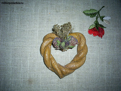 Как сделать поделку из соленого теста «Сердце с сухоцветами»