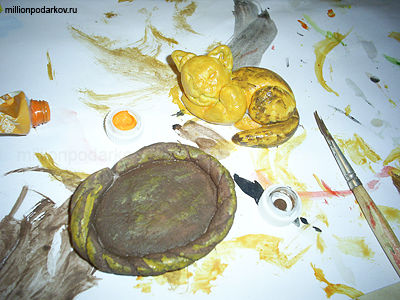 Готовую поделку покроем лаком. Вот такой сувенир у нас получился в итоге. Теперь Вы знаете, как сделать поделки из солёного теста своими руками и сможете изготовить их быстро и просто самостоятельно.