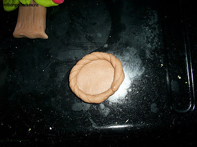 Слепим из теста вот такую корзинку с завитушкой по верху.