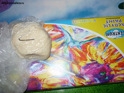 Для для того, чтобы изготовить красивые поделки из солёного теста "Мышка-украшение на ёлку" приготовьте солёное тесто, акриловые краски, кисть, стакан с водой, нитки для вязания., петельку из проволоки.