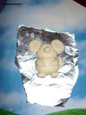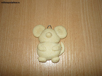Лепим фигурку мышки из теста. В верхнюю часть вставляем петлю из проволоки.