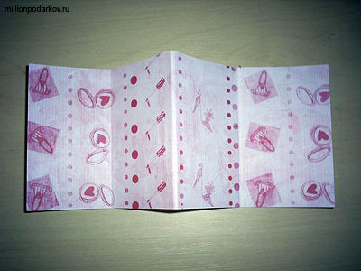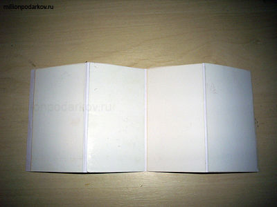 Попробуем сделать из картона и бумаги или ненужных визиток и бумаги для скрапбукинга мини-альбомчик, в который можно вклеивать миниатюрные фотографии, записывать различные воспоминания и пожелания. Для изготовления такого подарка нам понадобится 4 визитки или небольшие картонки. Приклеим их к бумаге. Согнем в виде гармошки.
