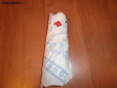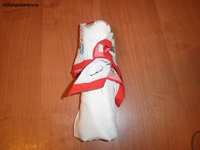 В лоскут цветной ткани, который больше размером запеленаем полученную куколку. Легкие поделки из ткани не только оригинальны, но и могут быть красивыми и полезными.