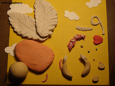 Лепим нужные детали для нашего Купидончика и вырезаем облака