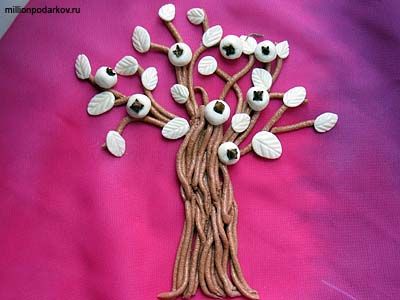 Такая "Яблонька" из соленого теста станет украшение любой комнаты или милым подарком для бабушки. Скрасьте свой семейный досуг за лепкой из соленого теста.