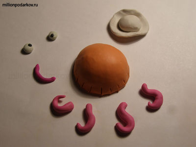 Из пластилина лепим необходимые детали для нашей поделки.