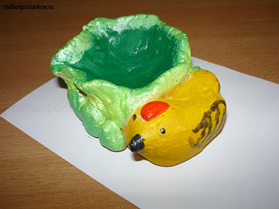 Раскрашиваем подставку акриловыми красками. Когда краска высохнет, поделку можно будет использовать по своему назначению. Лепка из соленого теста поделки "Пасхальная подставка под яйцо" завершена!
