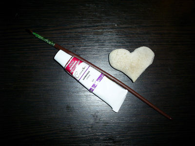 Вылепим из теста сердечко. Для этого можно воспользоваться формочкой для изготовления печенья. С помощью красок и кисточки разукрасьте поделку. Сделайте на ней надпись.