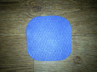 Вырезаем из ткани или фетра основу для поделки. Она может быть любой формы, как, например, в нашем случае – квадратной с закругленными краями.