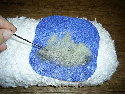 С помощью техники сухого валяния делаем рисунок на основе. Для этого иголкой приваливаем шерсть разных цветов, чтобы в итоге получился нужный рисунок.