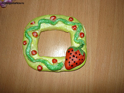 Когда изделие затвердело и остыло, покрываем его краской. Мастер класс поделки из теста "Рамка для фотографии" закончен!